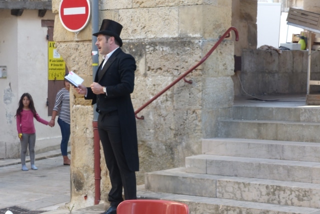 Le samedi 12 septembre, la médiathèque d’Airvault a invité un crieur de rue. Il a offert à haute voix les mots déposées par les passants à Airvault sur le marché et à la médiathèque.