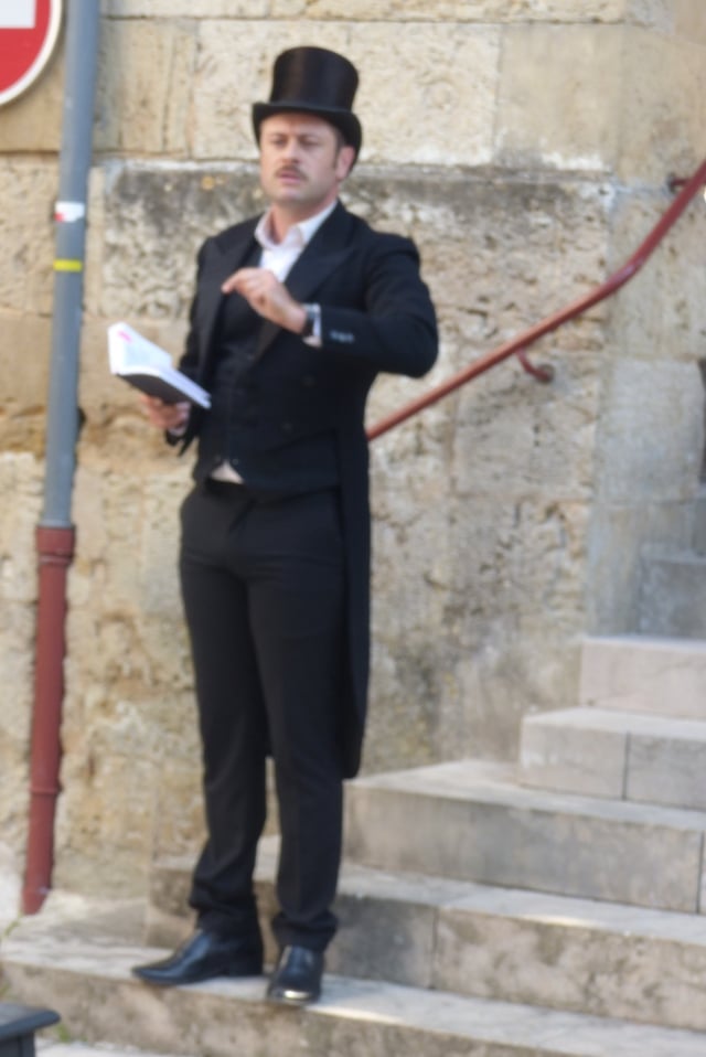 LE CRIEUR. – Mesdames, Messieurs, Ladies and Gentlemen, votre attention s’il vous please.