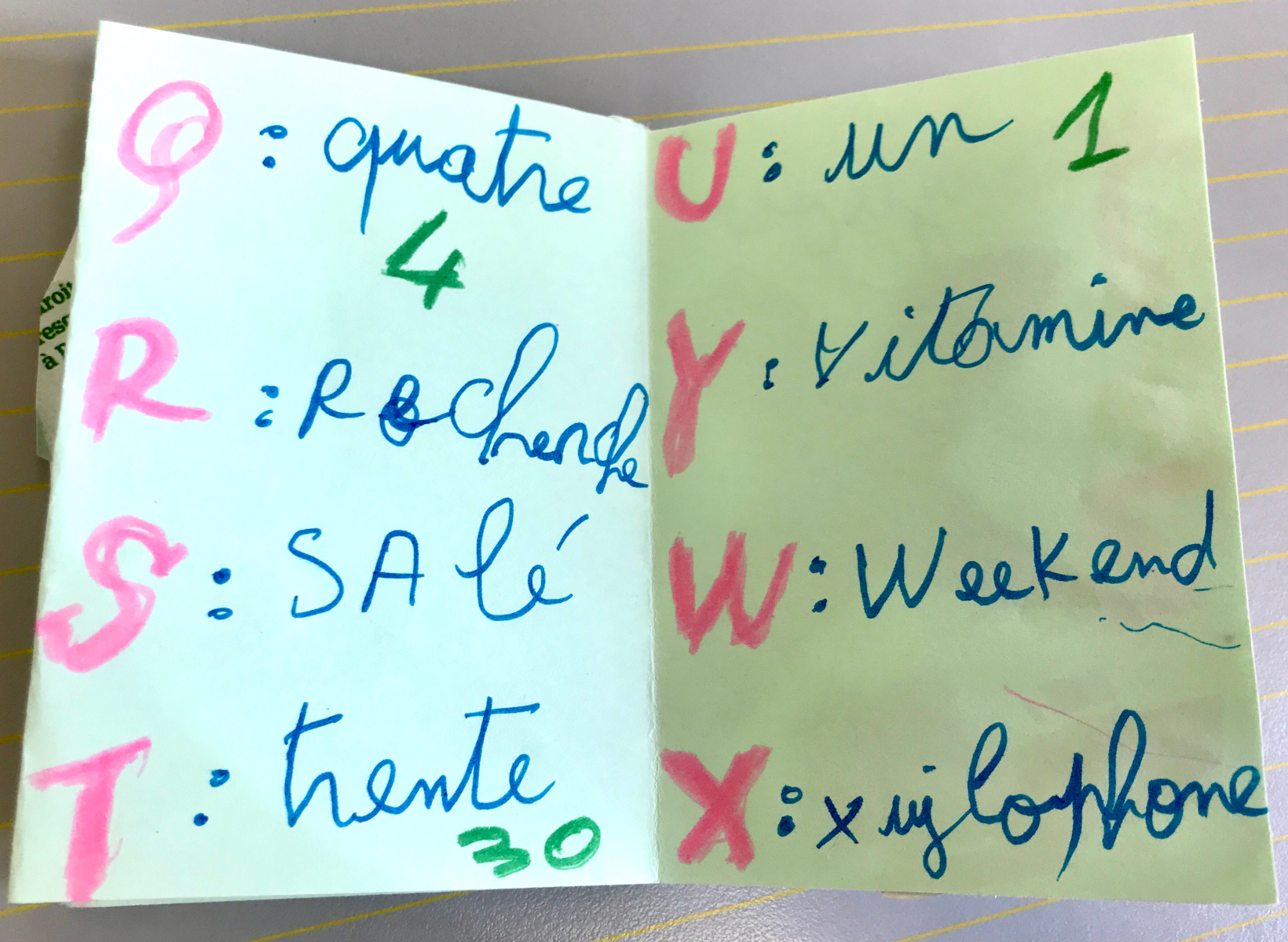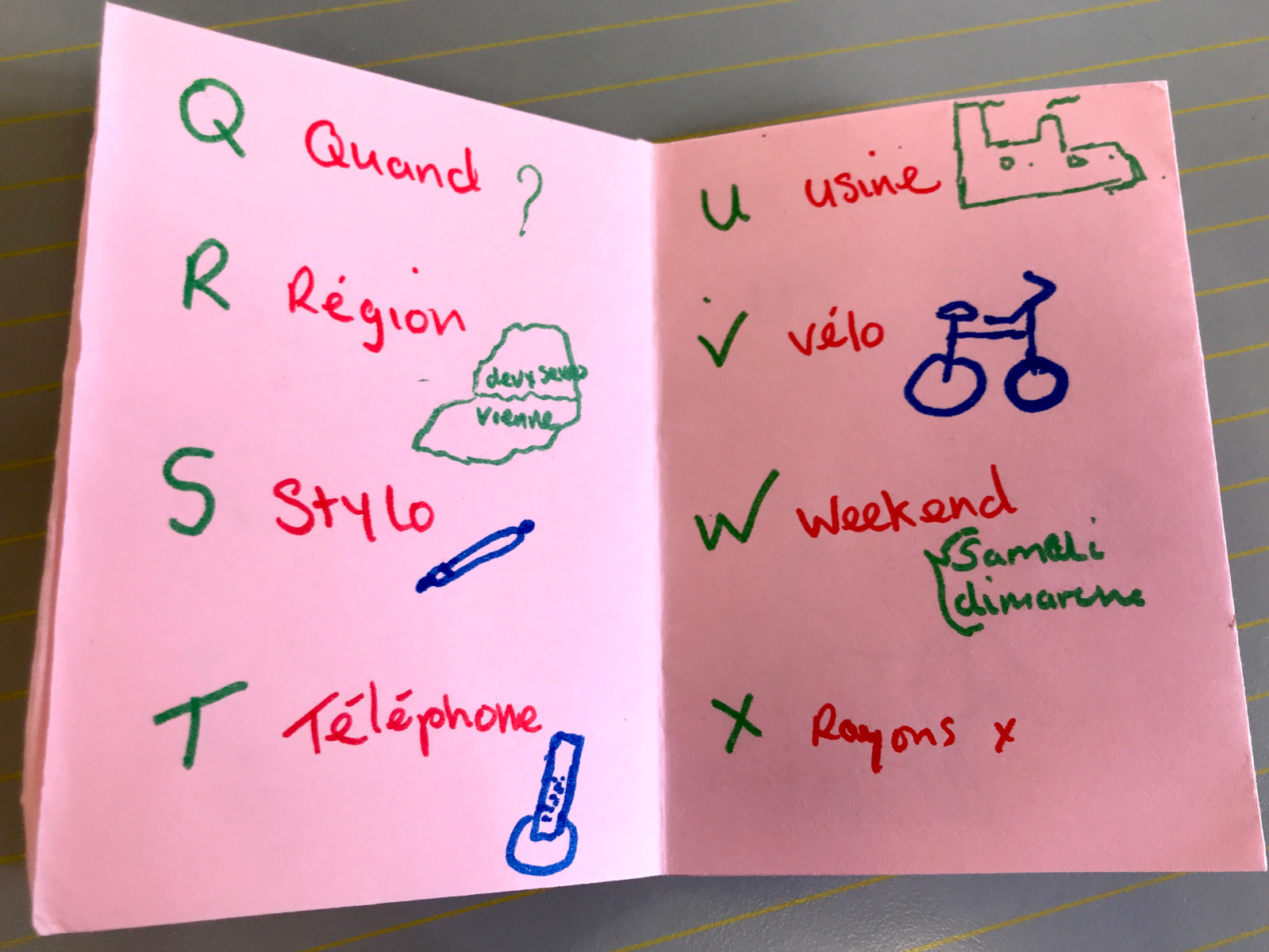 A Moncoutant, les apprenantes du Parcours 2 (Français Langue Etrangère) ont travaillé sur l’alphabet et ont produit un abécédaire. Pour chaque lettre de l’alphabet, elles ont choisi un mot.