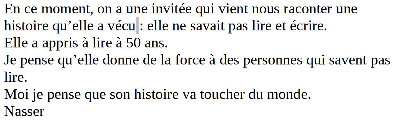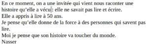 Des apprenants ont produit des textes à la suite de cette rencontre :