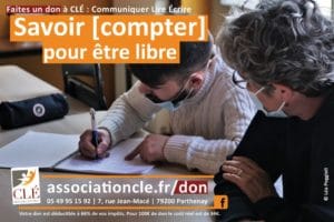 - par chèque envoyé par courrier postal à Association CLÉ, 7 rue Jean Macé, 79200 Parthenay.