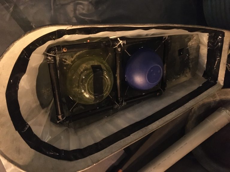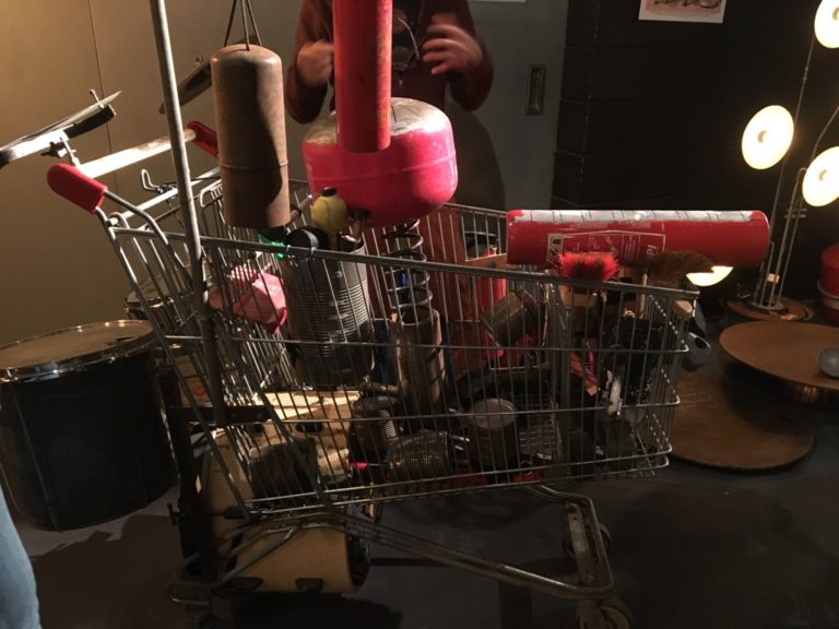 Après une petite introduction, tout le monde est entré dans une salle de spectacle, transformée en salle d’exposition pour l’occasion. Un film d’environ 15 minutes a été projeté et a permis de comprendre la démarche : faire des instruments de musique à partir d’objets de récupération.