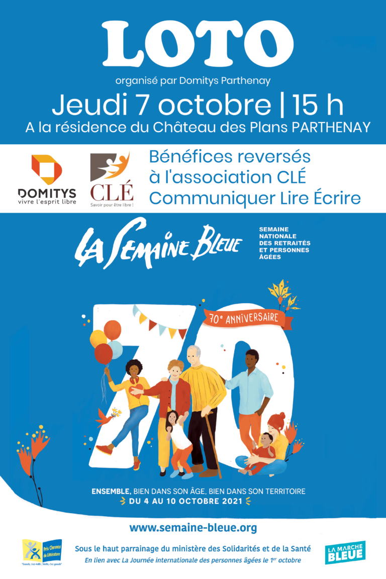 L’association CLÉ remercie la Résidence Services Seniors DOMITYS – Le Château des Plans à Parthenay qui nous a reversé les bénéfices d’un loto, à hauteur de 119€.
