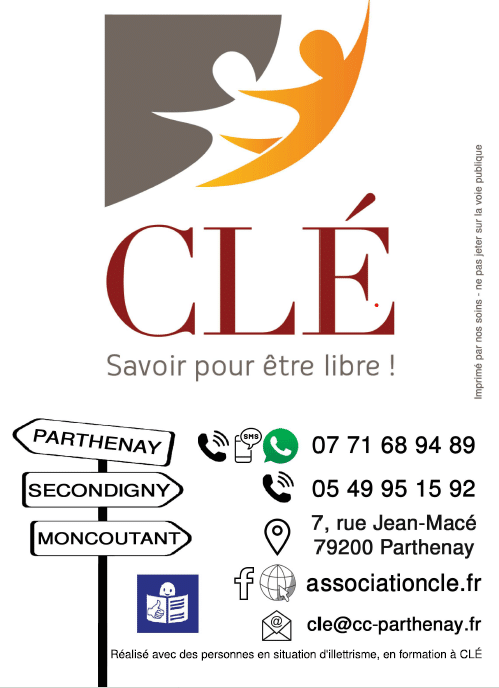 19 Juin 2023 Plaquette d’information de CLÉ, facile à lire et à comprendre (FALC) par JPChevalier | Classé dans : Actualités, Actualités des formations, Formations, Réalisations des apprenants, Ressources, Vie associative | 0 Pour enregistrer ou imprimer : Taille flyers Taille affiche moyenne Taille affiche grande Le pôle communication de CLÉ a fait un projet de plaquette d’information.Nous voulons une plaquette facile à lire et à comprendre.Ce projet a été travaillé dans les groupes de CLÉ.Les groupes ont apporté des modifications.Voici notre plaquette.Tout le monde peut l’afficher, la distribuer, la partager.