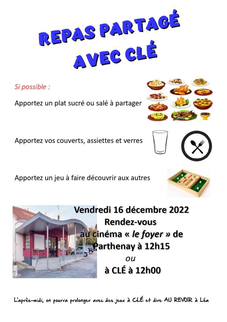 Vendredi 16 décembre, apprenant.e.s, bénévoles et salariées de CLÉ se sont retrouvé.e.s pour un repas partagé et un temps de jeux, autour de Léa.