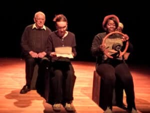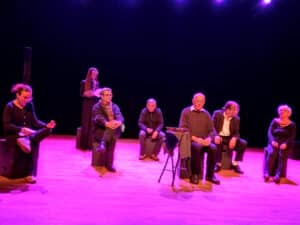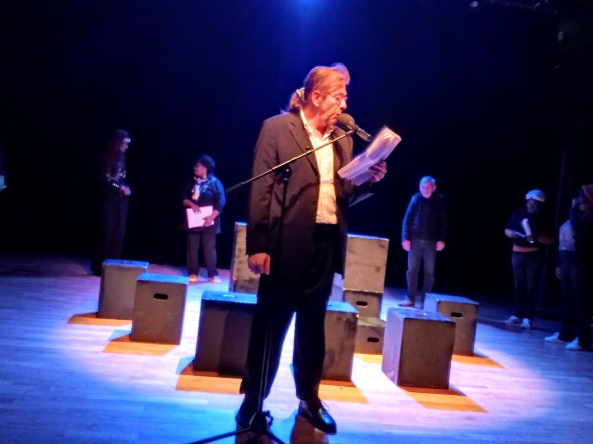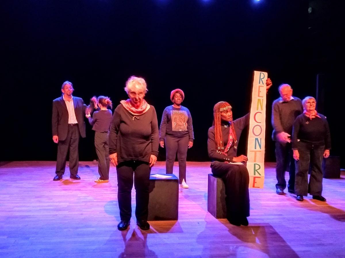 Après la « chorégraphie papier crayon » en ouverture, plusieurs tableaux se sont enchaînés : « le trésor, la voiture, une idée de saynète, acrostiche, un divorce dans l’humanitaire, récit de vie, Madeleine, madeleine de Proust, souvenirs du Labo des mots », et un slam émouvant pour terminer : « le déclic des mots ».