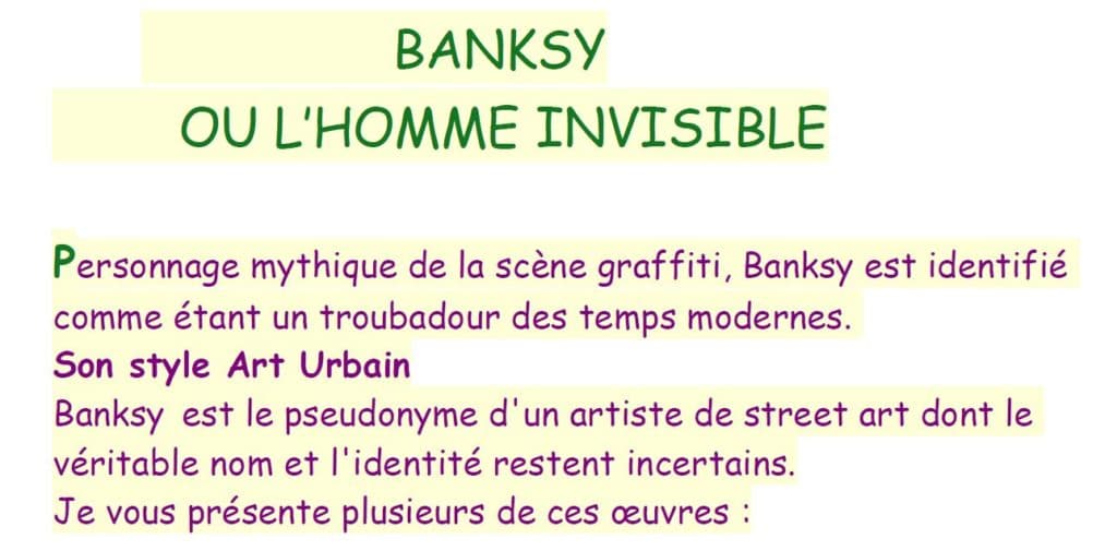 Cette semaine, nous découvrons Bansky ou l’homme invisible.