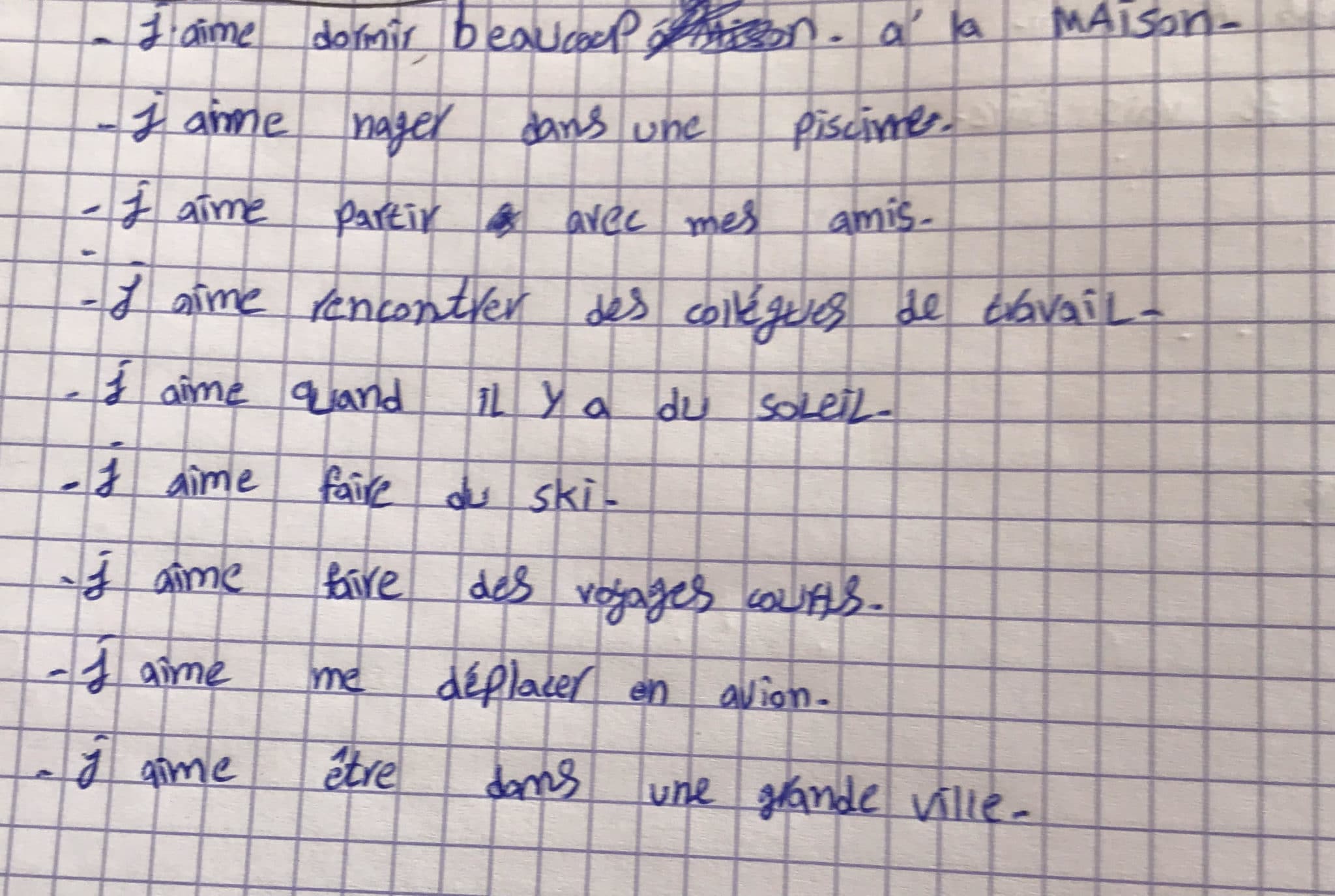 J’aime dormir beaucoup à la maison.