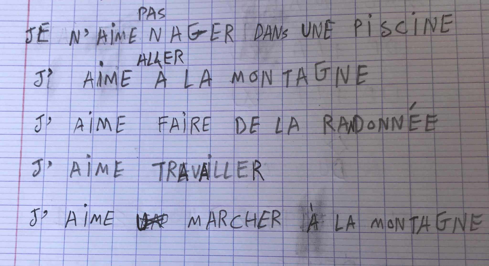 J’aime aller à la montagne.