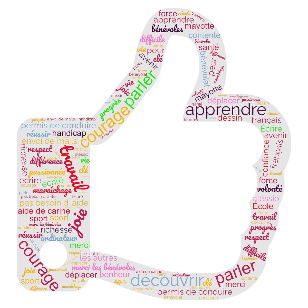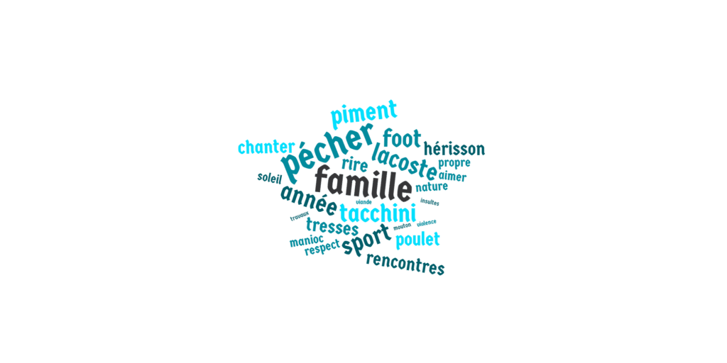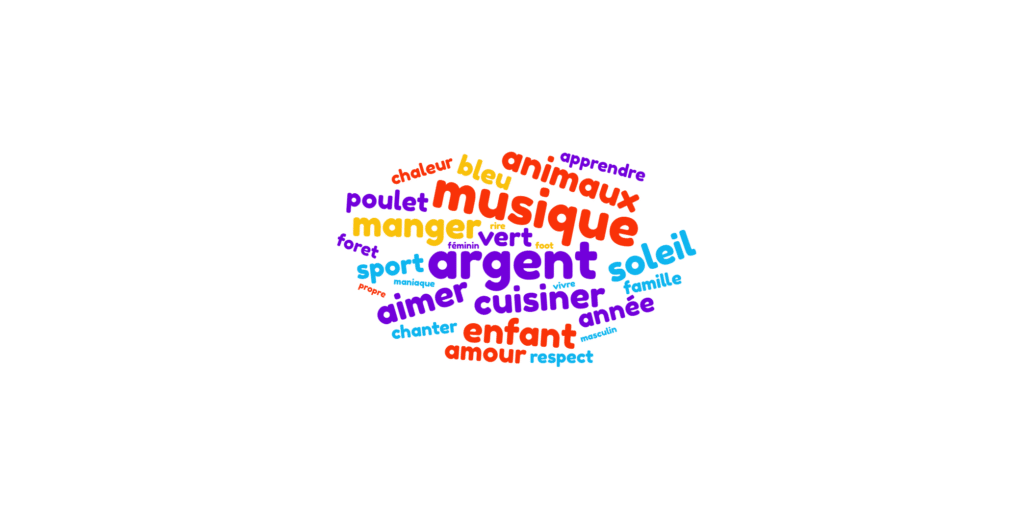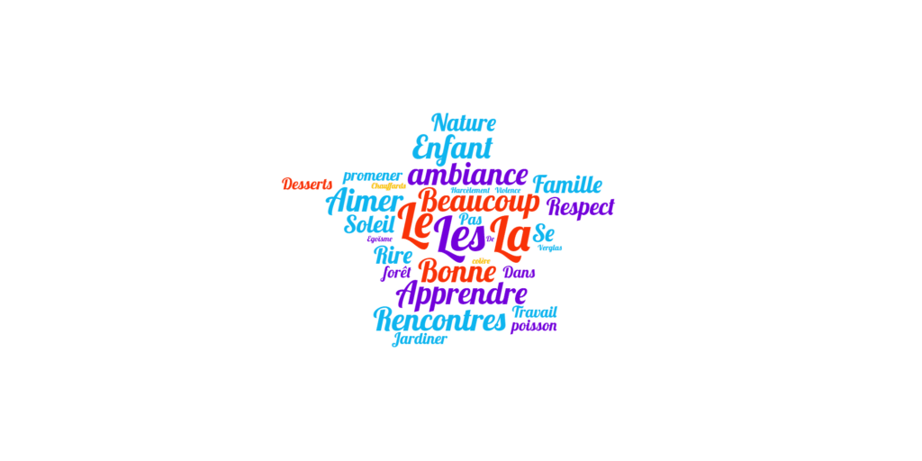 Fin novembre, le groupe de Parcours 1 a fabriqué des nuages de mots sur le thème « Les mots que nous aimons ».