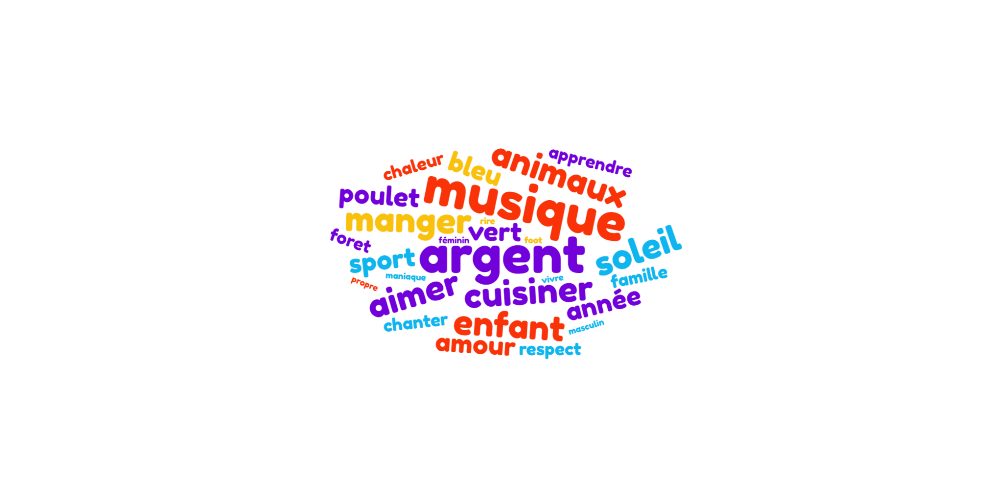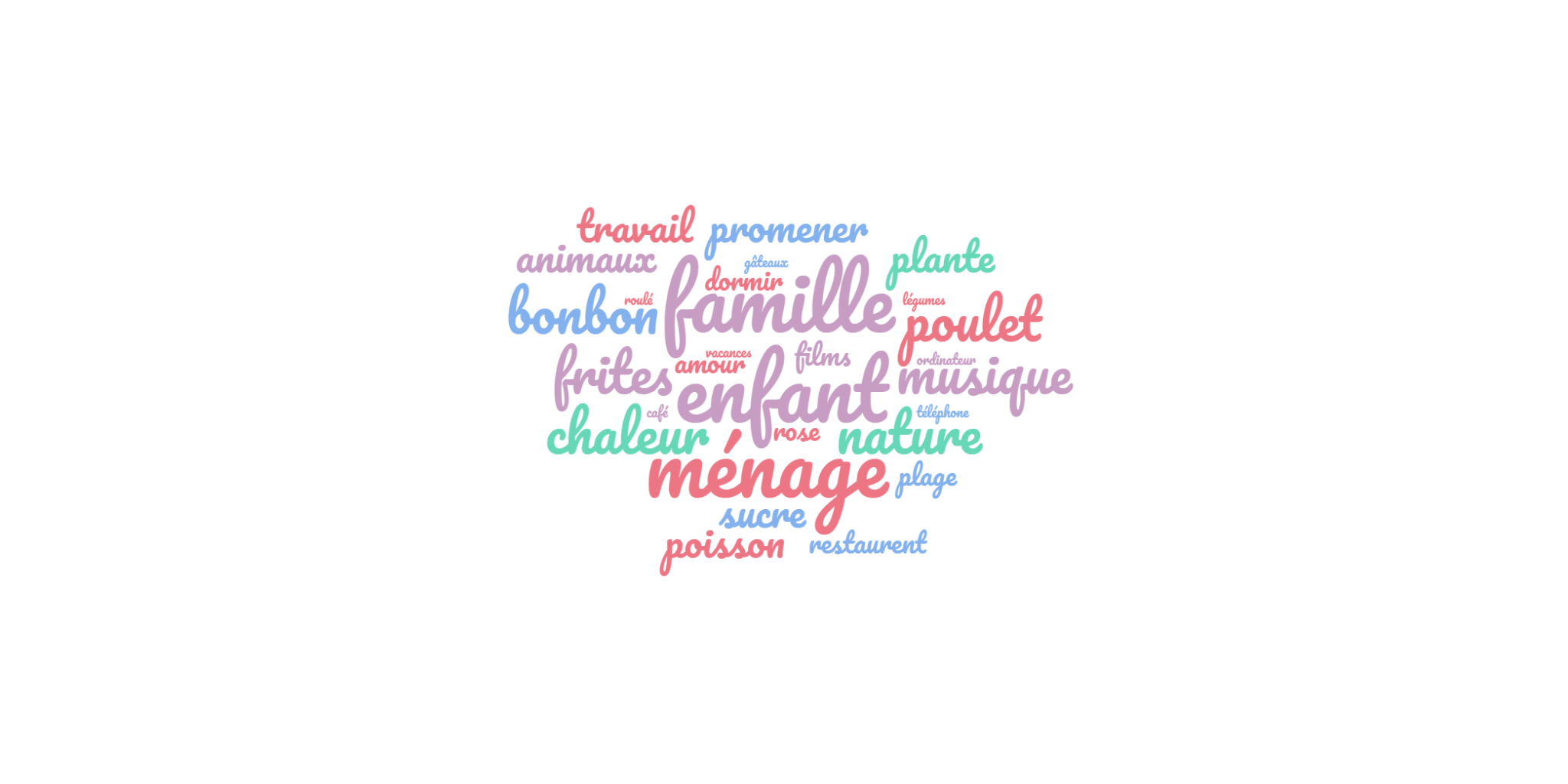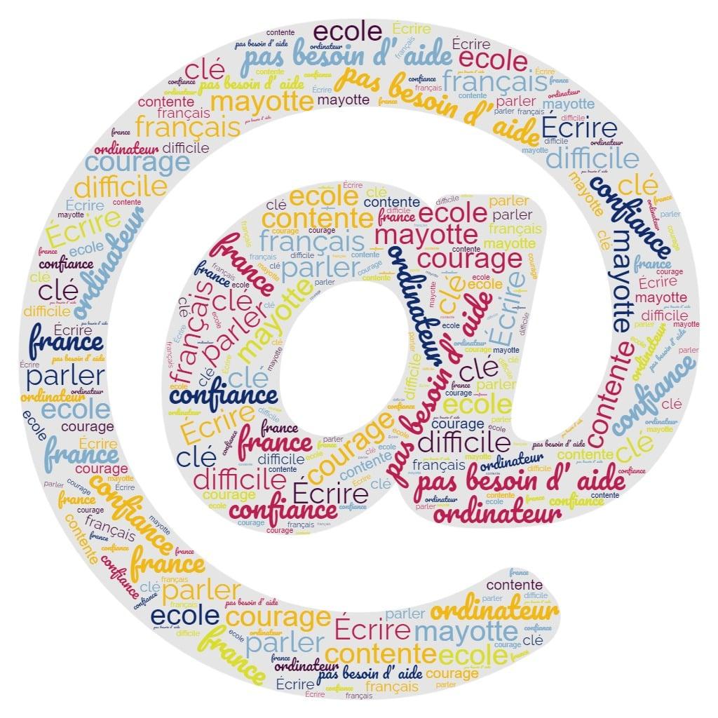 Fin novembre, le groupe de Parcours 1 a fabriqué des nuages de mots sur le thème « Les mots que nous aimons ».