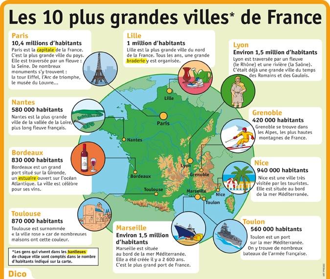 Jeudi 14 septembre, nous nous sommes intéressés aux 10 plus grandes villes française. Nous les avons classées de la plus petite (en nombre d’habitants) à la plus grande. Ensuite, nous avons échangé sur nos expériences dans les villes que nous avons visitées.