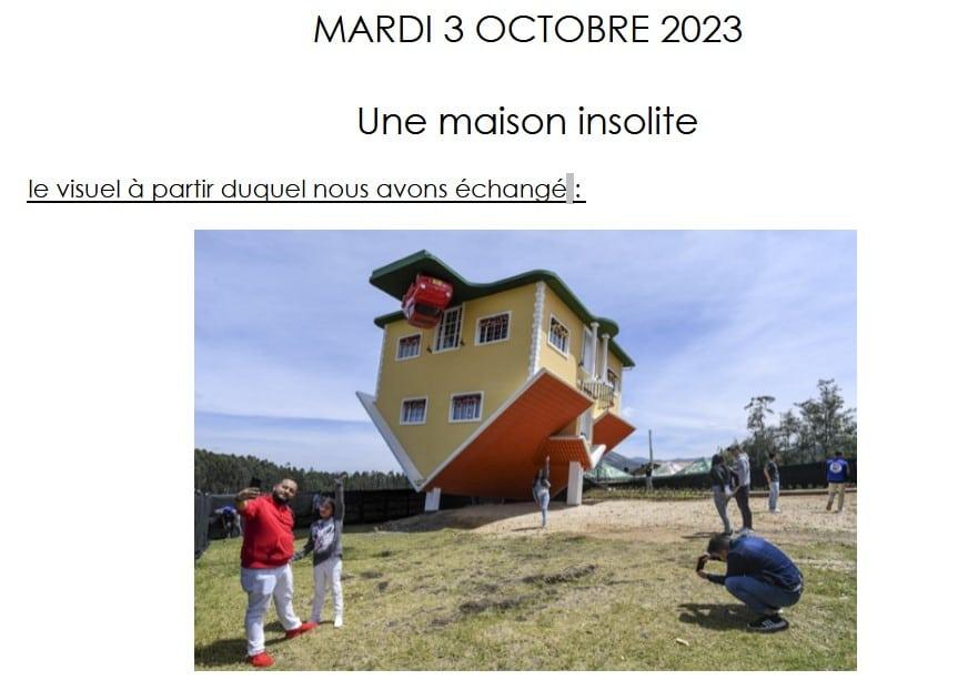 Inspirés par cette photo, voici les textes des participant à notre cours du jeudi 28 septembre: