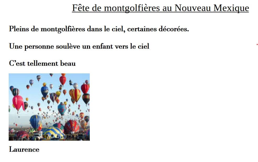 Jeudi 19 octobre, une photo de Montgolfière nous a fait rêver et nous a inspiré pour écrire…