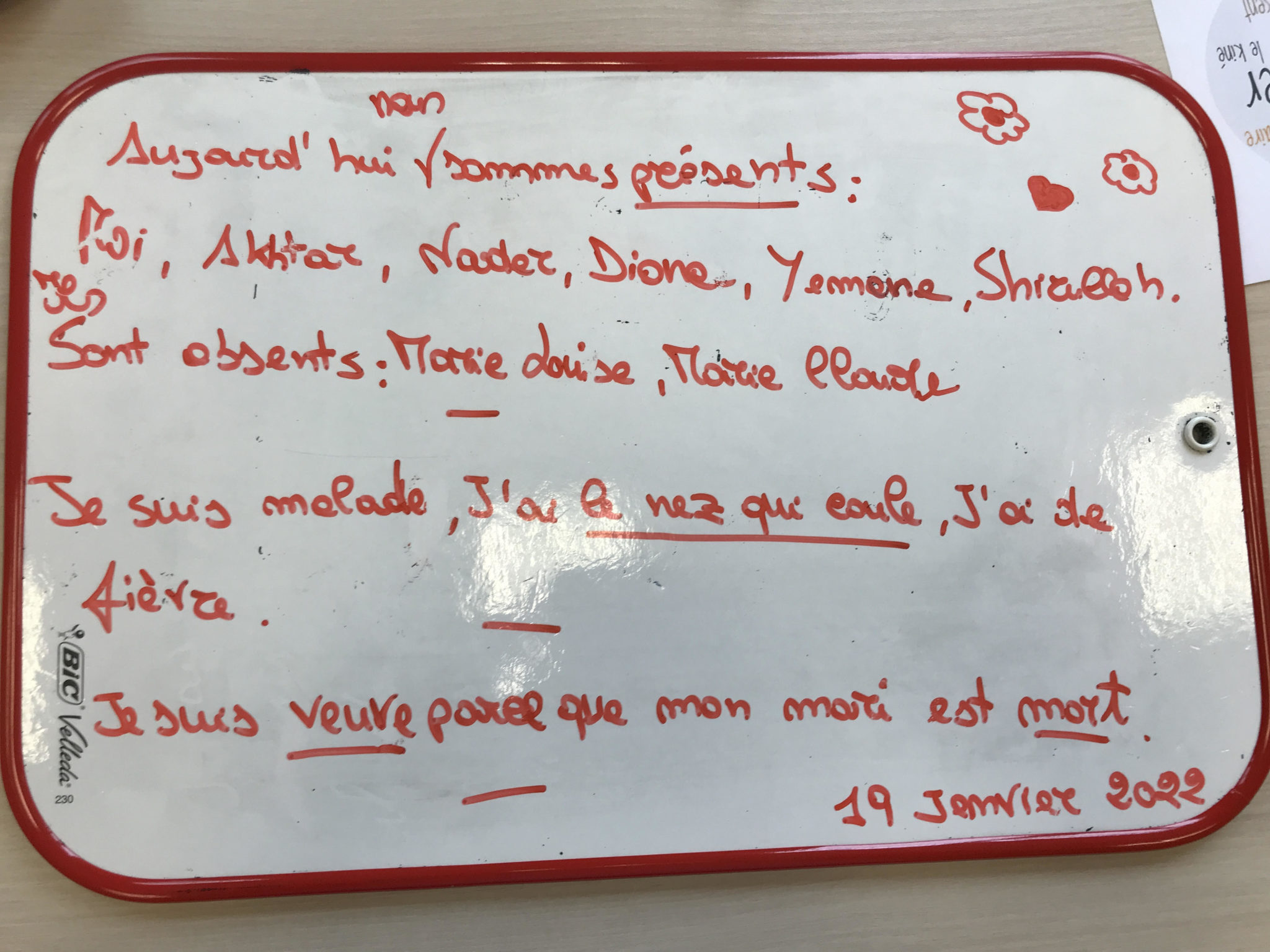 Lundi 7 février: les apprenantes du Parcours 2 (Français Langue Etrangère) de Moncoutant partagent leurs activités de la semaine dernière. Voici leurs productions :