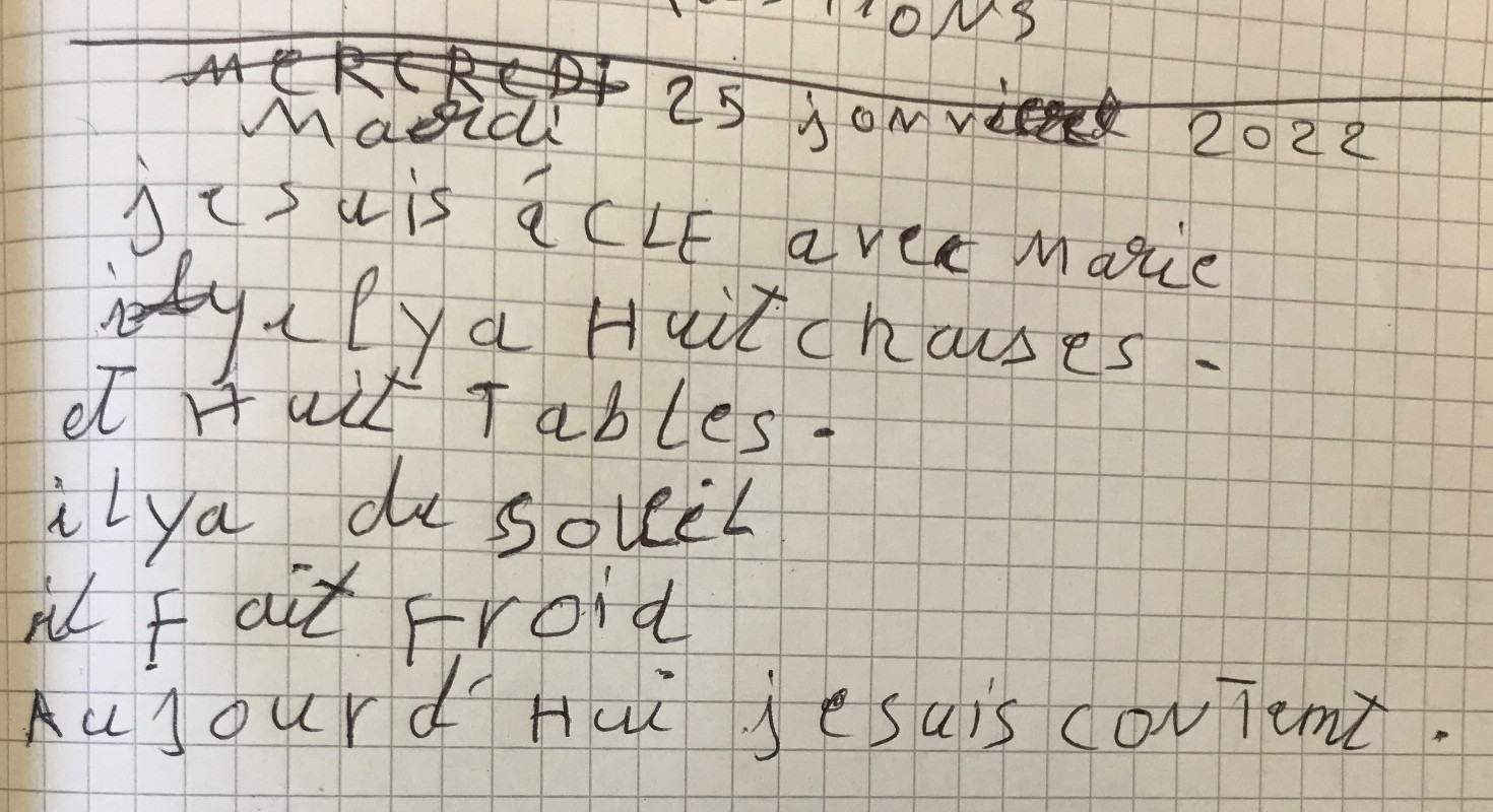 Mardi 25 janvier 2022, les apprenants du Parcours 2 (Français Langue Etrangère) ont écrit des textes libres. Voici leurs productions :