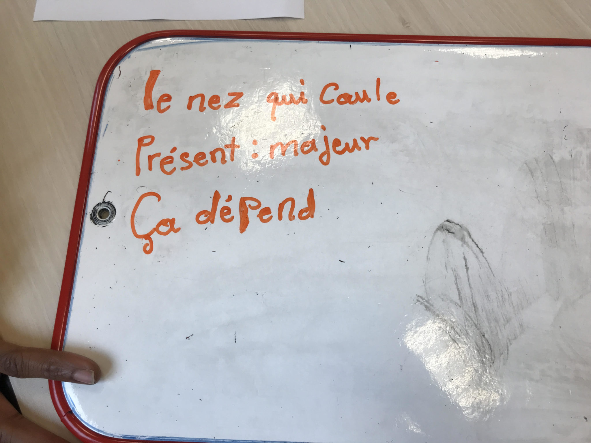 Le nez qui coule, présent, majeur, ça dépend – Sekou