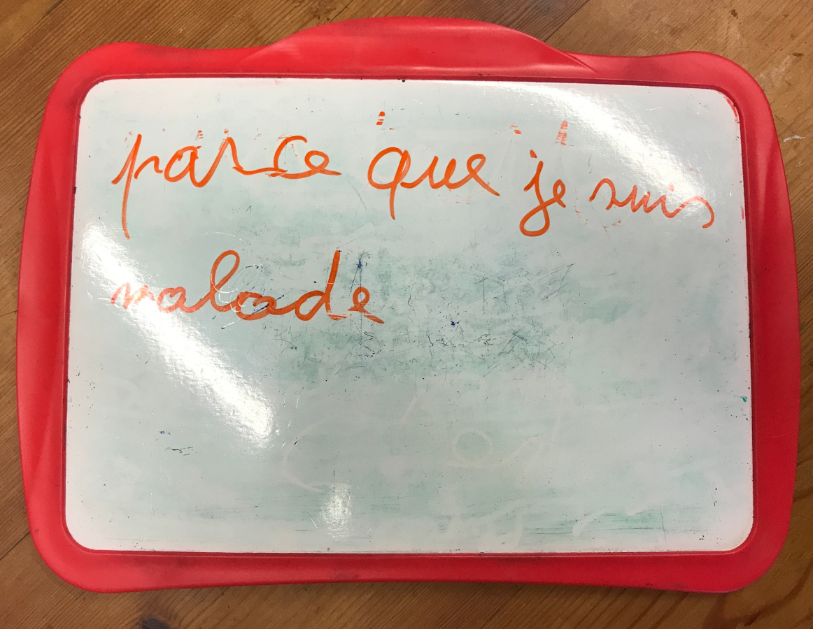 Je suis prête pour aller à la pharmacie parce que je suis malade.