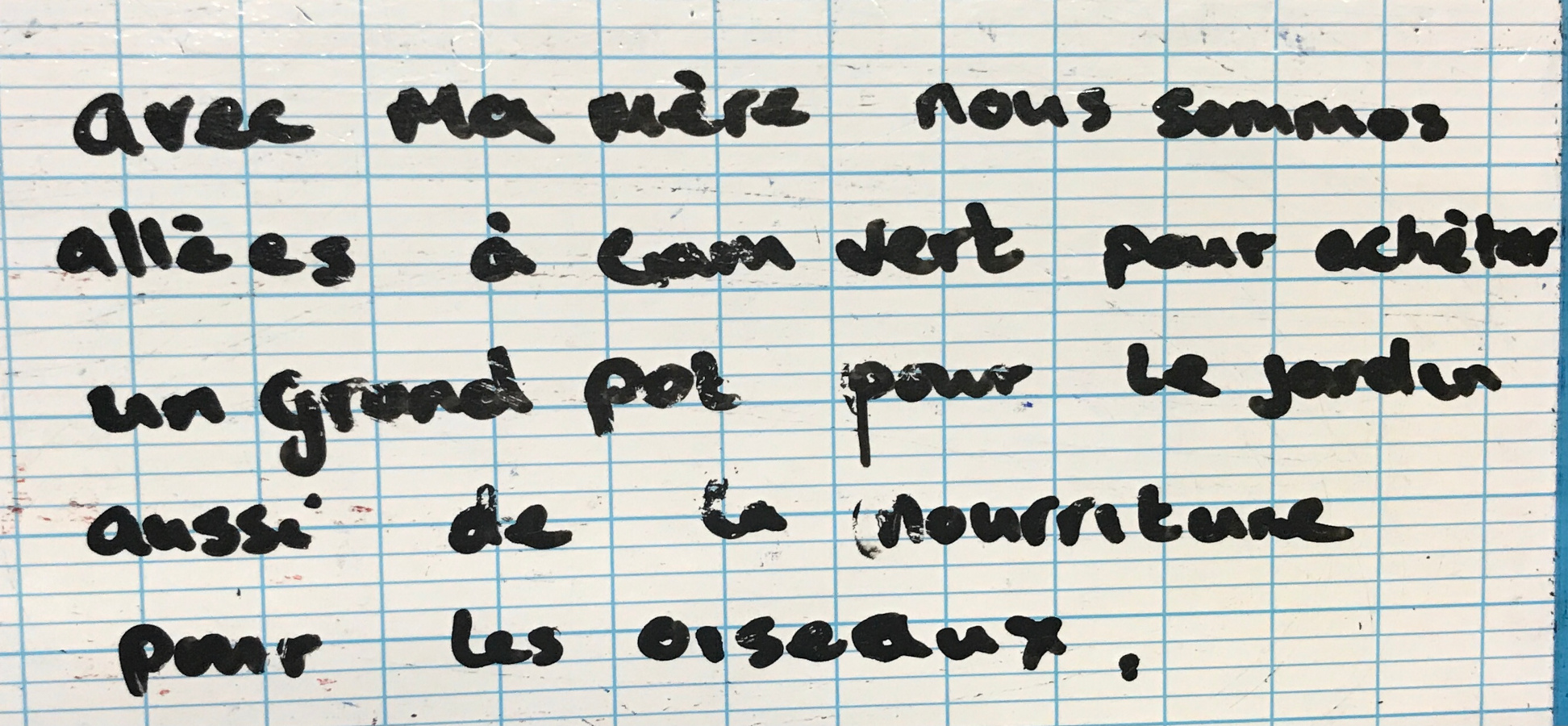 Avec ma mère, nous sommes allées à Gam Vert pour acheter un grand pot pour le jardin, aussi de la nourriture pour les oiseaux.