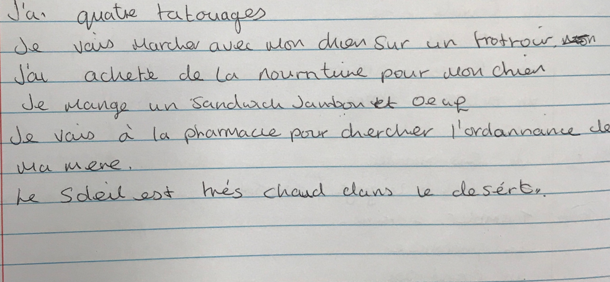 Ensuite, avec les nouveaux mots appris, elles ont écrit des phrases.