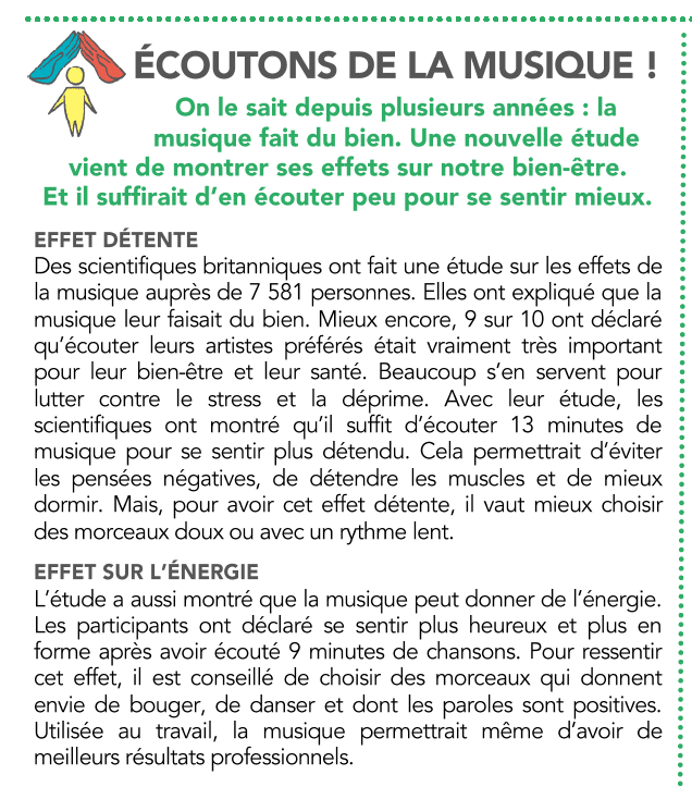 Après avoir lu l’article du Vite lu « Écoutons de la musique”, les apprenants de Secondigny écrivent ce qu’ils pensent de la musique…