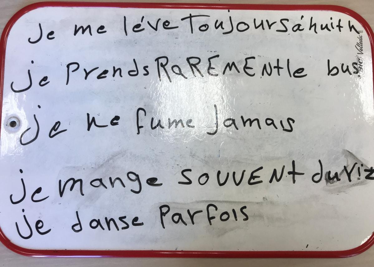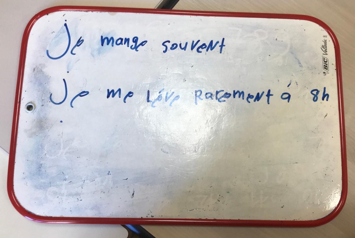 Mercredi, le groupe de Parthenay du Parcours 2 (Français Langue Etrangère) a parlé de la fréquence. Après une discussion, ils et elles ont écrit des phrases.