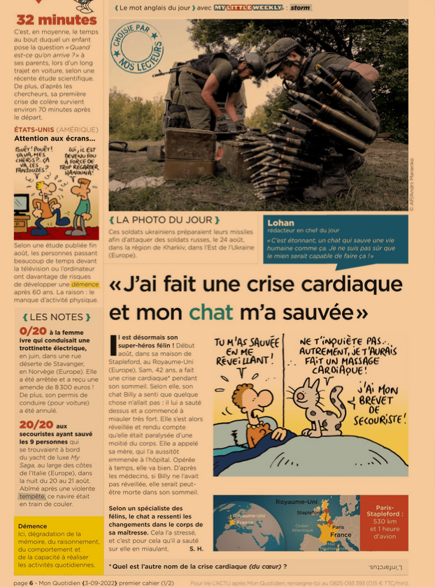 Nous avons lu une page de “mon quotidien” du 23 août 2022. Voici ce que nous avons retenu: