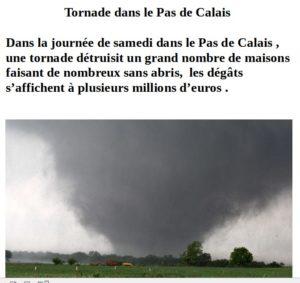 Le 26 octobre, Thierry a vu un reportage sur une tornade en Pas de Calais.