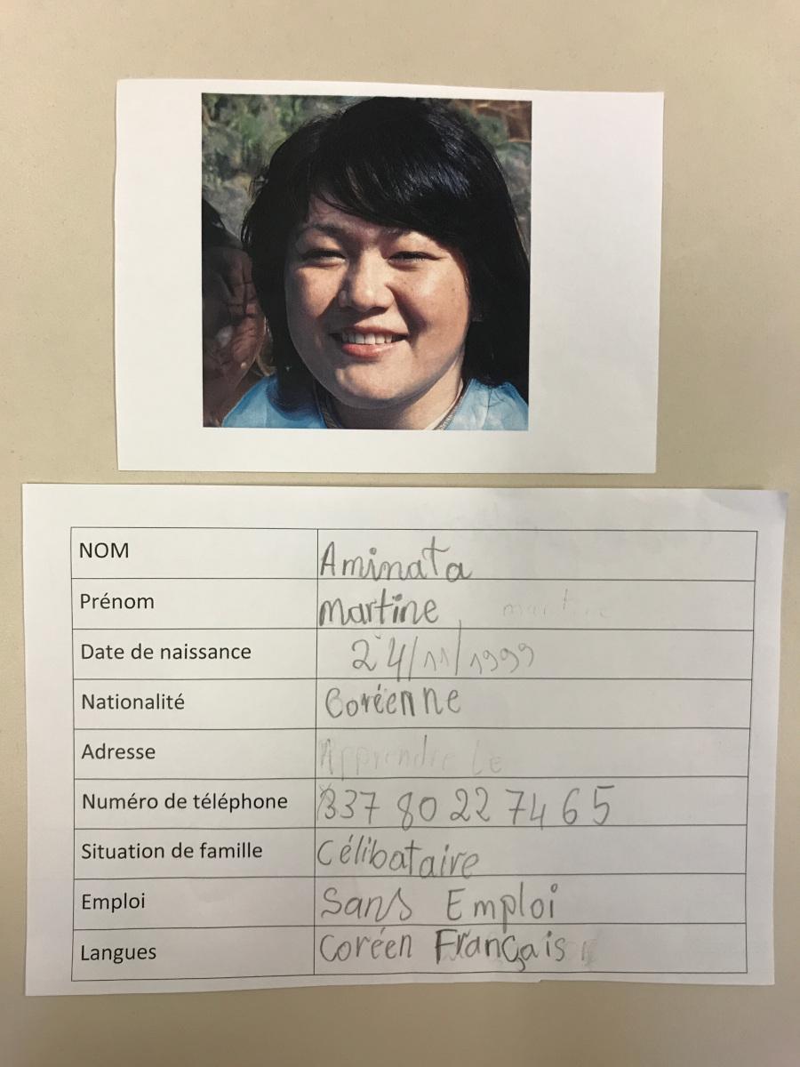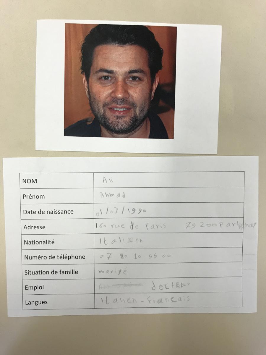 Dans un groupe du Parcours 2, les apprenants ont imaginé l’identité d’une personne à partir d’une photo. Rien de vrai dans tout cela; rêvons.