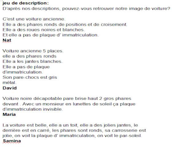 D’après nos descriptions, pouvez-vous retrouver notre image de voiture?