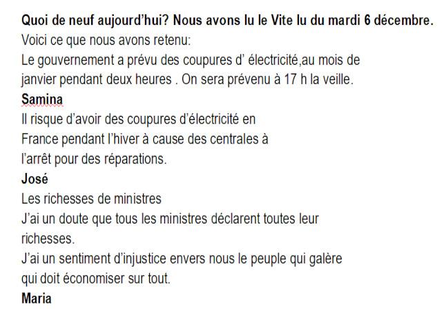 Voici les réactions des personnes du groupe aux articles de Mon quotidien du 9 novembre.