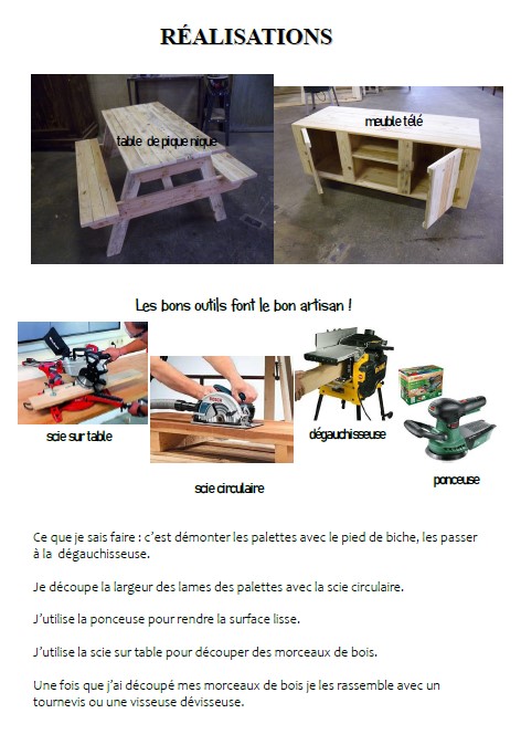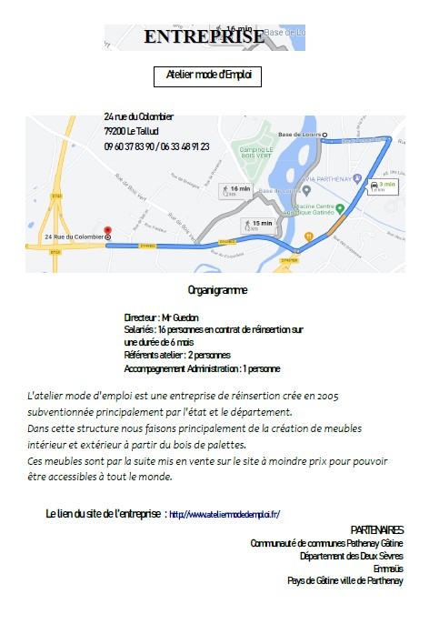 Au chantier d’insertion du Tallud, ils font des fauteuils,des tables, des bureaux, des armoires……. Les personnes qui travaillent là-bas trouvent leur chemin. Mathéo Debroise
