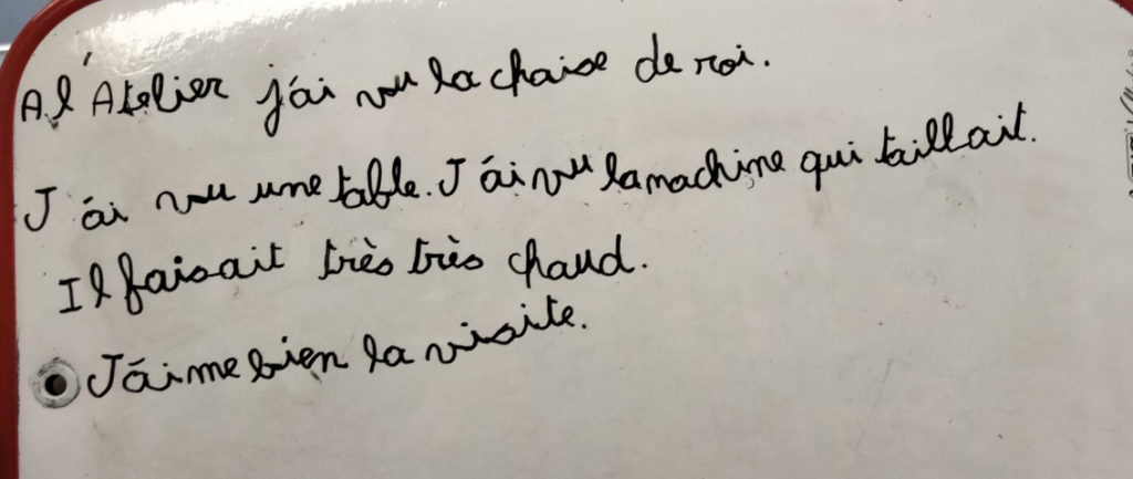 Le 24 septembre, on était parti visiter le chantier d’insertion du Tallud. J’ai vu beaucoup de trucs : une chaise de roi en bois, une table en bois, une machine qui coupe du bois, une ponceuse, une perceuse, une visseuse, une scie sauteuse, une limeuse, un aspirateur, une robot et de la sciure. On était bien accueilli. J’ai bien aimé la visite. CAMARA BOUNTOURABY